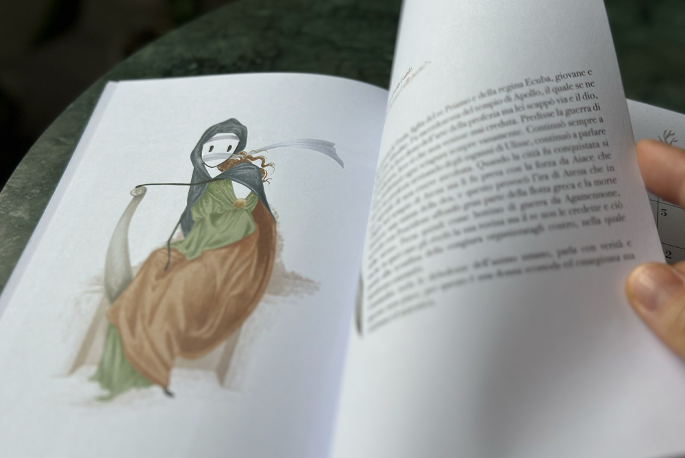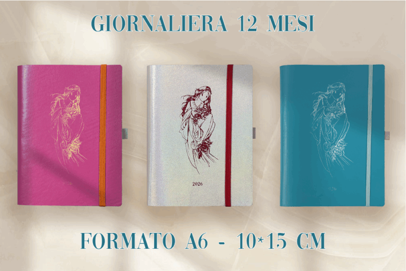 • Athena Parthenos: copertina orografica conchiglia, elastico rubino, grafica rubino. Segnalibro rubino.